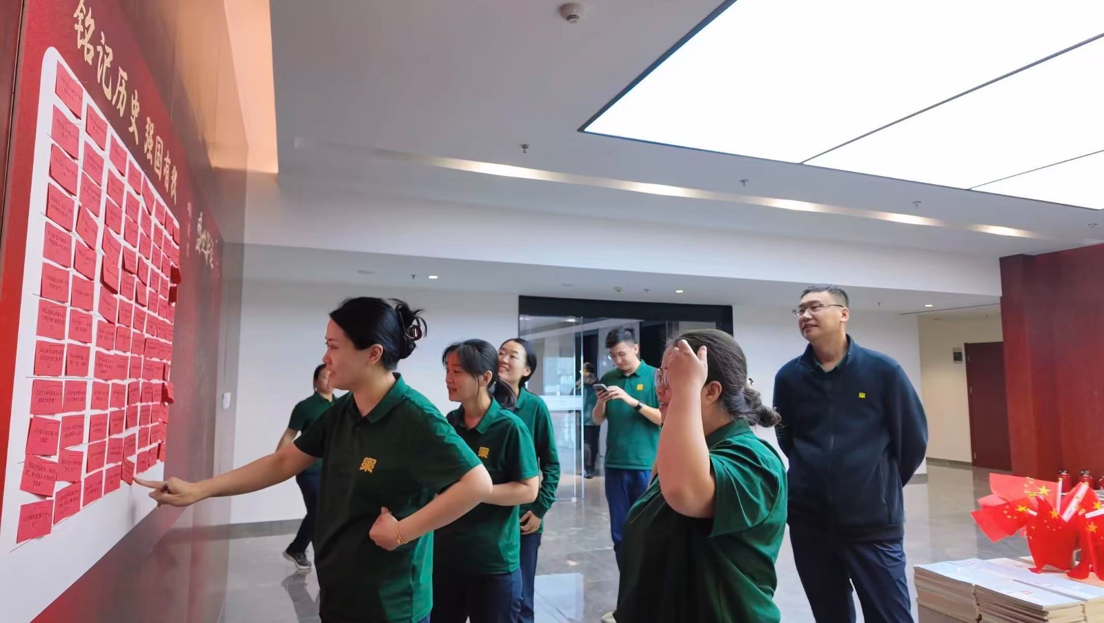9月18日,百合園林集團緊緊圍繞“弘揚抗戰(zhàn)精神 共筑國防長城”主題,組織開展了“銘記歷史 強國有我”--“全民國防教育月”暨“喜迎國慶”知識答題活動。黨史、抗戰(zhàn)史及國情知識問答展板前,員工踴躍參與現(xiàn)場答題,重溫歷史,答對者獲筆記本紀念品;祝福墻上,大家揮筆寫下對祖國的生日祝福與強國心聲,以銘記歷史、砥礪前行的姿態(tài)傳承愛國精神。