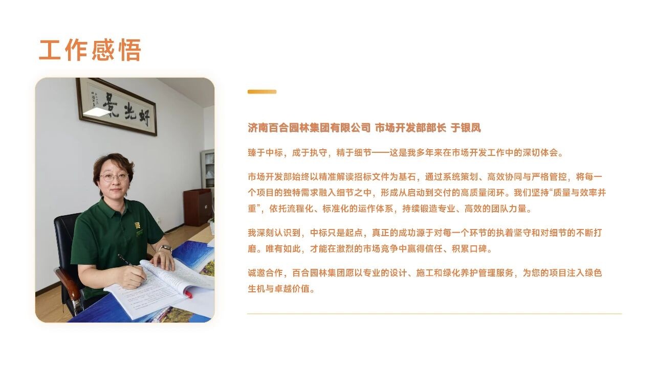 匠心足跡 強調(diào)園林人的專業(yè)精神和一步一個腳印的奮斗歷程。“百合視界“指通過員工的視角(感悟和隨手拍)展現(xiàn)的公司風(fēng)貌。突出專業(yè)性和員工視角。