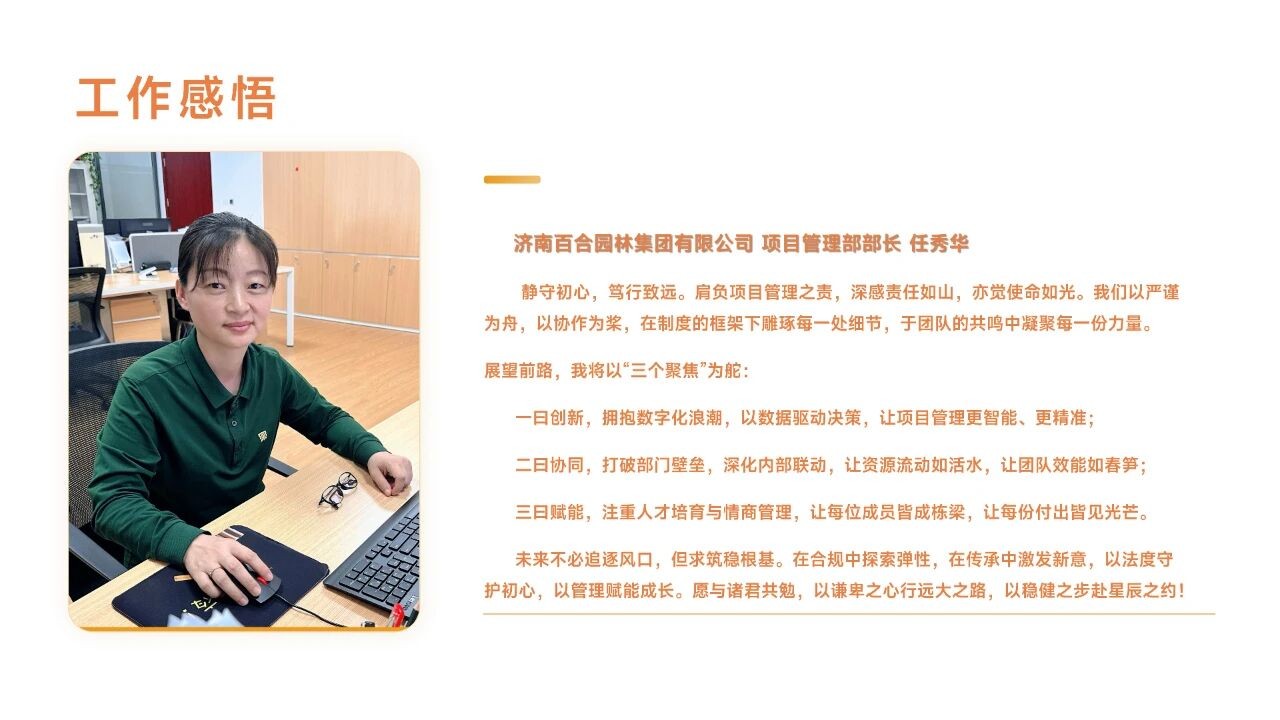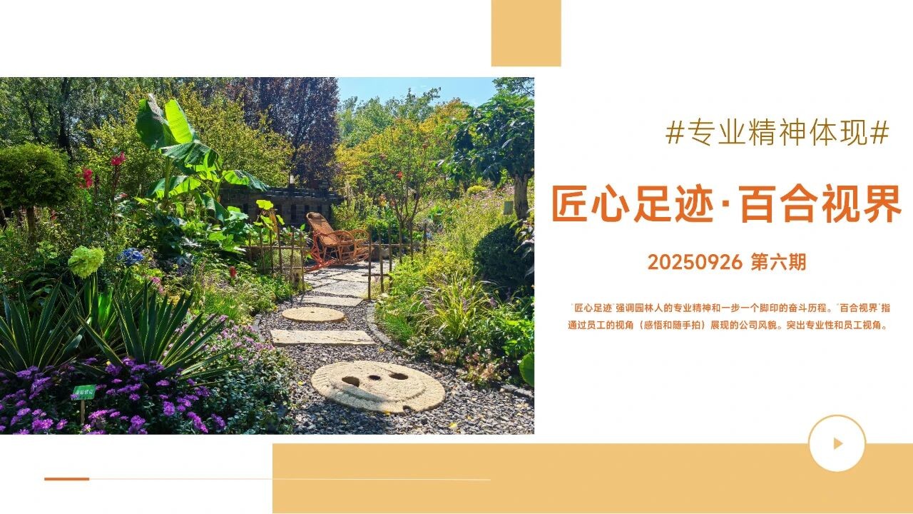 匠心足跡 強(qiáng)調(diào)園林人的專業(yè)精神和一步一個(gè)腳印的奮斗歷程。“百合視界“指通過員工的視角(感悟和隨手拍)展現(xiàn)的公司風(fēng)貌。突出專業(yè)性和員工視角。