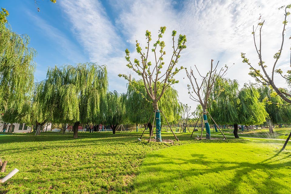 由百合園林集團(tuán)承建的濟(jì)南黃河百里風(fēng)景區(qū)中心景區(qū)景觀提升項(xiàng)目四標(biāo)段位于鵲華樓東節(jié)點(diǎn)(東段),本標(biāo)段施工面積約9.43公頃。主要建設(shè)包括:苗木栽植、敷設(shè)管線、園路廣場(chǎng)鋪裝、新建廊架、自行車驛站等內(nèi)容,并對(duì)鵲華樓東節(jié)點(diǎn)、對(duì)應(yīng)堤頂路兩側(cè)5m范圍內(nèi)綠化養(yǎng)護(hù)及景區(qū)東側(cè)斜坡綠地養(yǎng)護(hù)。