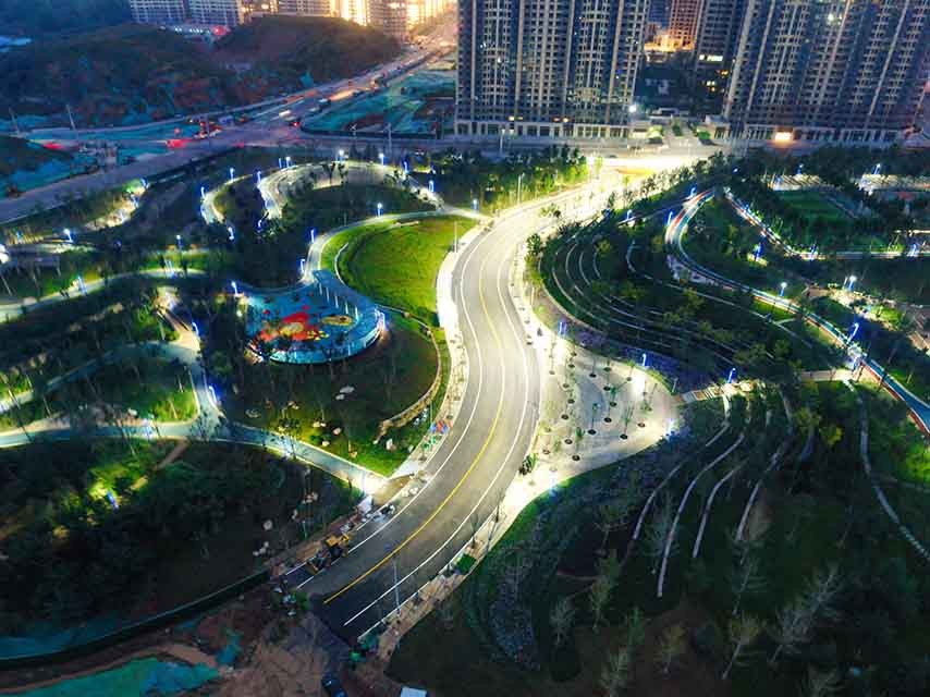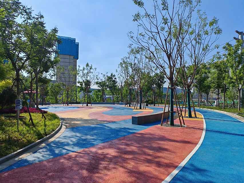 該項(xiàng)目是市中區(qū)園林局和百合園林集團(tuán)合作的PPP模式,公園總占地面積10.7公頃,總投資約1.37億。建設(shè)前為一處渣土場(chǎng),傾倒了20多年,渣土厚度約20-30米。建設(shè)中,借用原有渣土堆積形成的臺(tái)地,布置園林景觀,運(yùn)用園林手法,將其打造成了“森林圍城、綠道穿越、花景滿城、四季綠城”的城市公園。2022年,該項(xiàng)目獲得評(píng)審專家的高度認(rèn)可,被評(píng)為山東省“泰山杯”一等獎(jiǎng)。公園整體劃分為多彩運(yùn)動(dòng)體驗(yàn)區(qū)、核心景觀區(qū)、康養(yǎng)休閑區(qū)、兒童游樂(lè)區(qū)、全齡活動(dòng)區(qū)五個(gè)分區(qū)。設(shè)有籃球場(chǎng)、足球場(chǎng)、乒乓球場(chǎng)、兒童游樂(lè)場(chǎng)、健身綠道、健身廣場(chǎng)、全齡活動(dòng)廣場(chǎng)等,配套游客服務(wù)中心、景觀小品、玩趣雕塑、照明、監(jiān)控等設(shè)施。