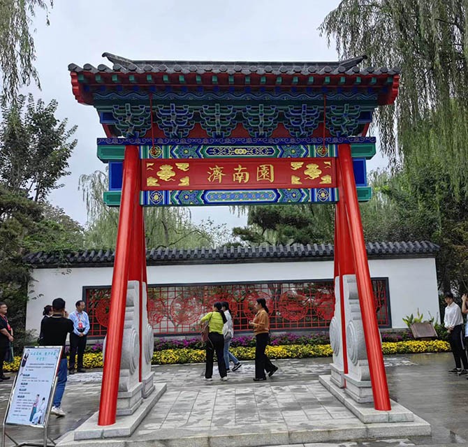 濟(jì)南園位于合肥國際園博園室外展園A3地塊,占地約2600平方米,以“山水泉城,魅力濟(jì)南”為主題,總體布局以濟(jì)南傳統(tǒng)院落為基底,融合山水城市格局,結(jié)合人文歷史、風(fēng)土人情,從畫境、生境、意境三個層次,展現(xiàn)濟(jì)南“山、泉、湖、河、城”渾然一體的獨特魅力。2022年10月開工建設(shè),2023年5月竣工,在38個參展城市展園中率先建成。