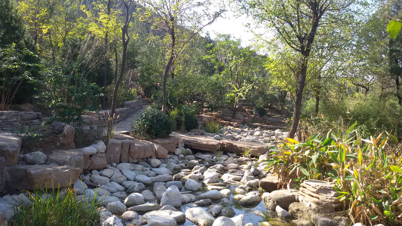 項(xiàng)目新建旱溪、導(dǎo)水槽等,增加了雨水的收集及滲透量,起到“滯、吸、凈、蓄”的作用,需要時(shí)還可將蓄存的水“釋放”出來(lái)、加以利用,同時(shí)也增加了景區(qū)自然生態(tài)的景觀效果。