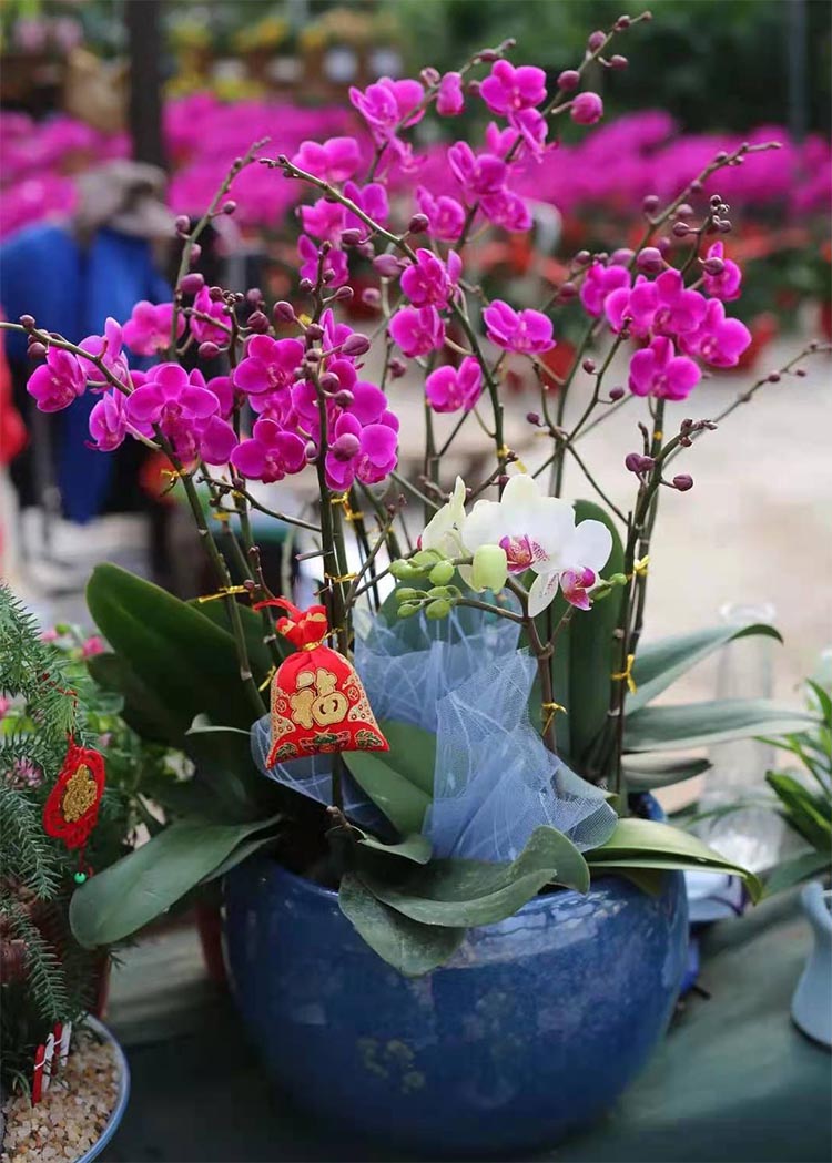 以往年宵花盛會講究大氣、端莊風(fēng)格的中、大型花卉綠植為主,今年轉(zhuǎn)變成小而精、更適合家庭使用的小型花卉為主打,同時為滿足不同群體的需求搭配了少量優(yōu)質(zhì)的中、大型花卉綠植?;ㄅ鑴t以當(dāng)下流行的藍(lán)色、綠色為主,樣式也更能融入到家庭氛圍中。今年花卉綠植的價格也更加親民,讓市民都能選到心怡的花卉綠植。