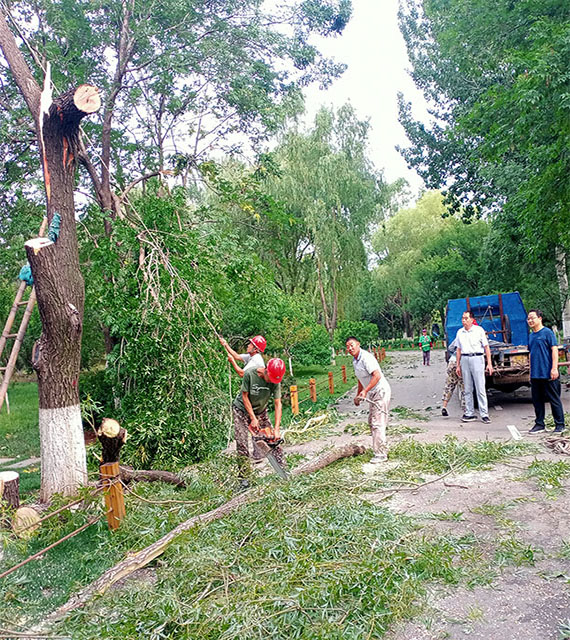 扶正倒伏苗木 清理樹木斷枝:近日,受惡劣天氣的影響,個(gè)別項(xiàng)目出現(xiàn)苗木倒伏及斷枝的情況,百合園林集團(tuán)綠化養(yǎng)護(hù)管理人員對(duì)相關(guān)項(xiàng)目倒伏苗木及時(shí)進(jìn)行扶正并清理斷枝,營(yíng)造了一個(gè)良好的自然環(huán)境,同時(shí)也消除了安全隱患。