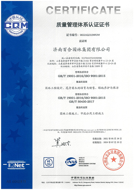 經(jīng)過嚴(yán)格審核,審核組一致認(rèn)為:百合園林集團(tuán)的質(zhì)量·環(huán)境·職業(yè)健康安全管理體系為工程質(zhì)量、生產(chǎn)安全提供了有力保障,促進(jìn)了公司健康、有序地發(fā)展,該體系達(dá)到了復(fù)評換證現(xiàn)場審核標(biāo)準(zhǔn),準(zhǔn)予換發(fā)新證。